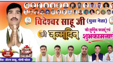 कवर्धा/कबीरधाम। कांग्रेस के सक्रिय युवा नेता बिदेश्वर साहू के जन्मदिन के अवसर पर जिले भर में बधाइयों और शुभकामनाओं का…