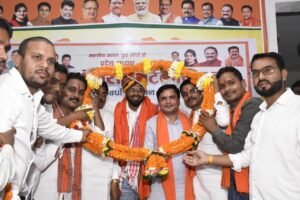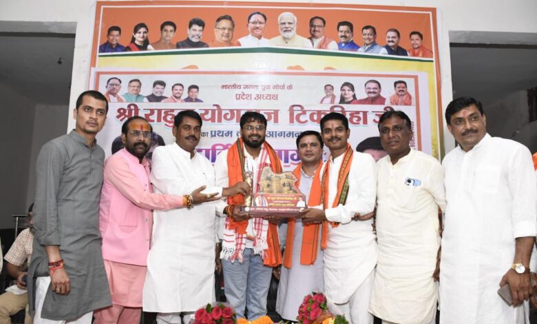 कवर्धा। प्रदेश भारतीय जनता युवा मोर्चा (भाजयुमो) के नवनियुक्त प्रदेश अध्यक्ष राहुल योगराज टीकरिहा का गुरुवार को प्रथम बार कवर्धा आगमन हुआ। उनके स्वागत के लिए भाजयुमो कार्यकर्ताओं और पदाधिकारियों में जबरदस्त उत्साह देखने को मिला। जिला भाजयुमो अध्यक्ष मनीराम साहू के नेतृत्व में कार्यकर्ताओं ने प्रदेश अध्यक्ष का भव्य एवं आत्मीय स्वागत किया। पूरे शहर में स्वागत का माहौल उत्सव में तब्दील हो गया। पूर्व निर्धारित कार्यक्रम के अनुसार गुरुवार को कवर्धा-रायपुर मार्ग स्थित महिन्द्रा शो-रूम के पास कार्यकर्ता बड़ी संख्या में एकत्र हुए। जिलाध्यक्ष मनीराम साहू, सचिन गुप्ता, योगेश चंद्रवंशी महामंत्री भाजयुमो सहित सैकड़ों युवा कार्यकर्ताओं ने गाजे-बाजे, ढोल-नगाड़े, फूल-मालाओं और आतिशबाजी के साथ प्रदेश अध्यक्ष राहुल योगराज टीकरिहा का शानदार स्वागत किया। उनके स्वागत में भाजयुमो जिंदाबाद, राहुल टीकरिहा जिंदा बाद जैसे नारों से पूरा क्षेत्र गुंजायमान हो उठा।