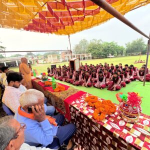 छात्राओं का पुष्पवर्षा कर स्वागत किया गया तथा विद्यावाहन (साइकिल) को पूजा कर माँ भारती के आशीर्वाद से चाबी सौंप कर सम्मानपूर्वक वितरित किया गया।