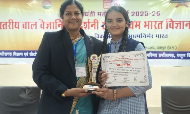 कबीरधाम। शासकीय उच्चतर माध्यमिक विद्यालय सारंगपुरकला, विकासखंड बोड़ला की कक्षा 10वीं की छात्रा अंजली अनंत ने बड़ा उपलब्धि हासिल की है। जशपुर में आयोजित राज्य स्तरीय बाल वैज्ञानिक प्रदर्शनी प्रतियोगिता में अंजली ने प्राकृतिक खेती पर आधारित मॉडल प्रस्तुत कर तृतीय स्थान प्राप्त किया, जिसके आधार पर उनका राष्ट्रीय स्तर के लिए चयन हुआ है।