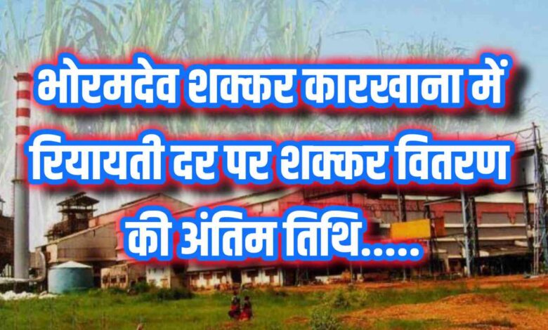 कवर्धा: भोरमदेव सहकारी शक्कर उत्पादक कारखाना मर्यादित राम्हेपुर कवर्धा में अंशधारी सदस्यों रियायती दर पर शक्कर वितरण किया जा रहा है। भोरमदेव सहकारी शक्कर कारखाना मर्यातिद कवर्धा के पेराई सीजन 2025-26 के संचालन को दृष्टिगत रखते हुए समस्त अंशधारी सदस्यों को रियायती दर पर शक्कर वितरण की अंतिम तिथि 29 नवंबर निर्धारित की गई है। कारखाना प्रबंधन समस्त अंशधारी सदस्यों से अपील करता है कि उक्त तिथि तक शक्कर का उठाव अनिवार्य रूप से कर लेवें। निर्धारित अवधि के बाद अंशधारी सदस्यों को रियायती दर पर शक्कर का वितरण नहीं किया जावेगा। अंशधारी सदस्यों को रियायती दर 30 रूपये प्रति किलोग्राम की दर से प्रति शेयर 50 किलोग्राम शक्कर प्रदाय किया जा रहा है। अंशधारी सदस्यों को शक्कर प्राप्त करने के लिए शेयर प्रमाण-पत्र की छायाप्रति, पिछले वर्ष 2024 में रियायती दर की मनी रसीद की छायाप्रति, अंशधारी सदस्य की आईडी प्रुफ के रूप में वोटर आईडीकार्ड, आधार कार्ड, ड्रायविंग लाईसेन्स बैंक पास बुक इत्यादि, अंशधारी सदस्य के अधिकृत सदस्य को भेजने की स्थिति में अधिकृत करने संबंधी आवेदन एवं अधिकृत सदस्य का आधार कार्ड, रियायती दर पर 30 रू. प्रति किलो के मान से राशि जमा कर शक्कर प्राप्त करना होगा। रियायती दर पर शक्कर वितरण कार्यालयीन समय प्रातः 10 बजे से सांय 04 बजे तक (अवकाश दिवस) को छोड़कर किया जा रहा है।