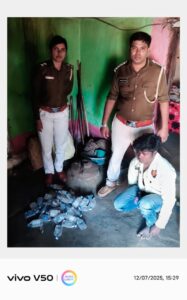 शनिवार 07 दिसंबर 2025 को ग्राम झलमला में गश्त के दौरान मिली मुखबिर सूचना के आधार पर नैन सिंह (पिता अघन सिंह, उम्र 21 वर्ष, निवासी ग्राम सोनवाही, थाना झलमला) के मकान की विधिवत तलाशी ली गई। तलाशी में मध्यप्रदेश निर्मित देशी मदिरा प्लेन के 49 पाव (कुल 8.820 बल्क लीटर) बरामद किए गए, जिनकी बाजार कीमत ₹3920 आंकी गई।