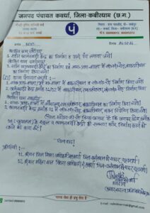 कवर्धा :- आज जनपद पंचायत क्षेत्र क्रमांक 03 (सुखाताल) कवर्धा अंतर्गत विभिन्न ग्राम पंचायतों के शासकीय स्कूलों एवं आंगनबाड़ी केंद्रों में व्याप्त मूलभूत समस्याओं के निराकरण हेतु एक विस्तृत ज्ञापन माननीय कलेक्टर महोदय जी को कवर्धा जिला कबीरधाम को सौंपा गया।