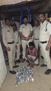 प्राप्त सूचना के आधार पर ग्राम कोड़ापुरी, थाना कुंडा में अवैध शराब विक्रय की शिकायत पर तातु चंद्राकर पिता शिवप्रसाद चंद्राकर के रिहायशी मकान की तलाशी ली गई। तलाशी के दौरान मौके से 80 नग पाव (14.4 बल्क लीटर) देशी मदिरा प्लेन बरामद की गई।